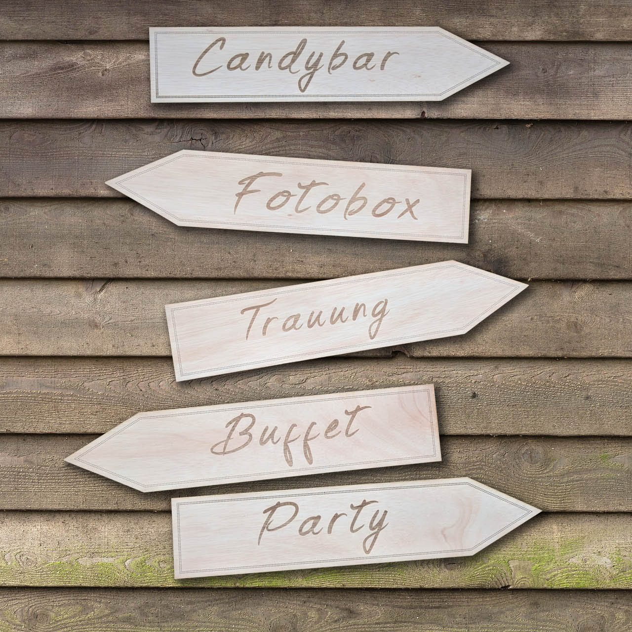 Pfeile-Set (5 Stk) Hochzeit – „Fotobox, Candybar, Party, Buffet, Trauung“
